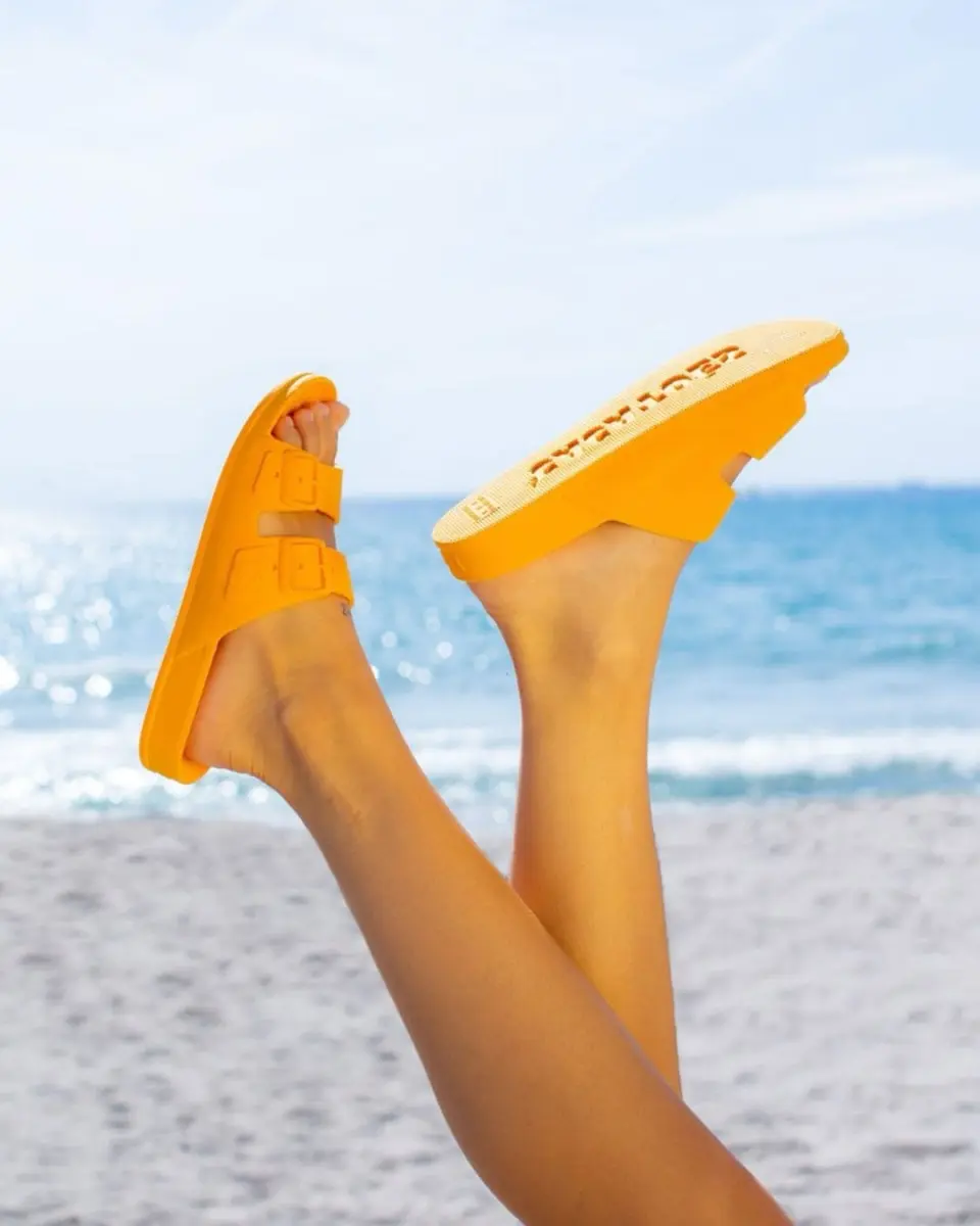 Cacatoes est une marque vibrante et colorée influencée par la beach-culture et le street-style brésilien. Fidèle à ses origines, Cacatoes propose une sélection de sandales conjuguant teintes acidulées et esthétique casual, vous accompagnant en ville comme à la plage. Un parfum de bubblegum apporte de l’originalité à leurs créations éco-durables et résistantes.