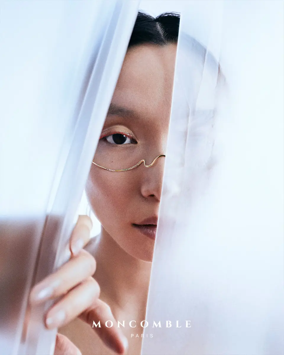 En mars dernier, sur le salon Premiere Classe, Moncomble a présenté ses nouvelles pièces. On découvre les Lacrima 2.0 où la structure en plaqué or en pont reste la même mais se pare cette fois de chaînes rehaussées de diamants.