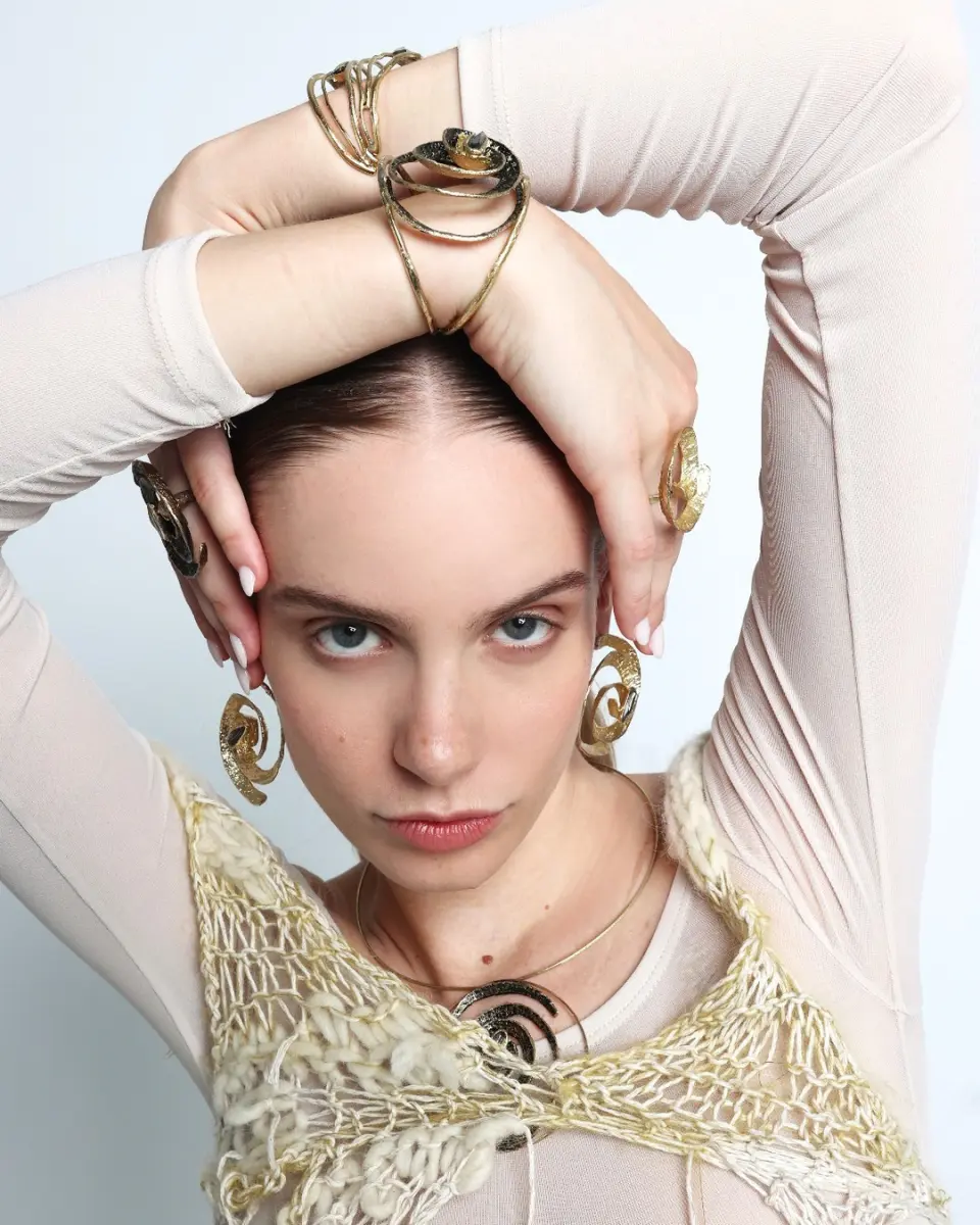 Marina Panagiotoulia launched her "7pm" brand in 2007. Inspired by the body, nature and urban landscapes, she creates jewellery with a mix of organic geometric shapes. An ode to childhood and femininity, characterised by creative, colourful pieces.