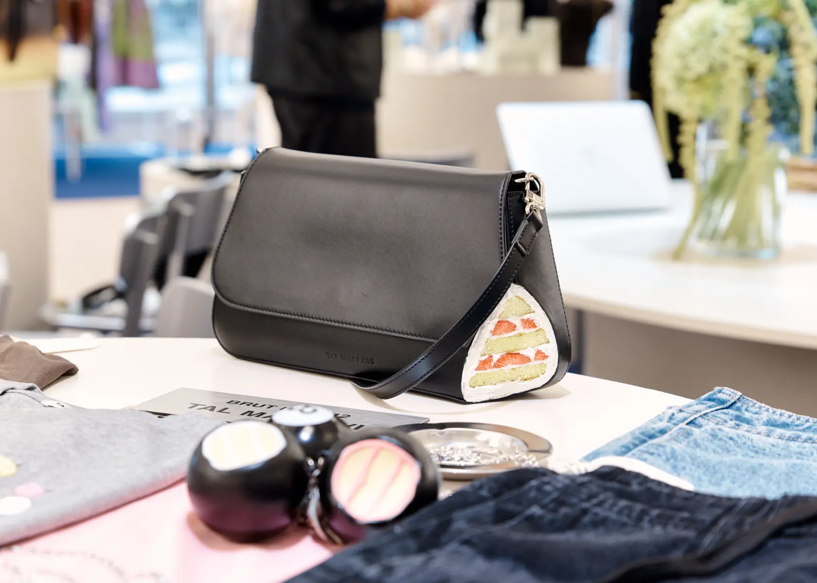 "Hyères was a wonderful experience in terms of creative freedom” says Tal Maslavi. Premiere Classe now allows me to sharpen my message and to learn how to sell, to negotiate, to tackle the business aspect of the job. He presented his first accessories collection at Premiere Classe, a range of jewelry shaped like chewed gum and handbags that look like they’ve been bitten into, revealing layers of a cake. “My designs get a lot of attention, but I realize that standing out isn’t enough to enter the market. You need the proper narrative, good pricing and a solid knowledge of your products.”