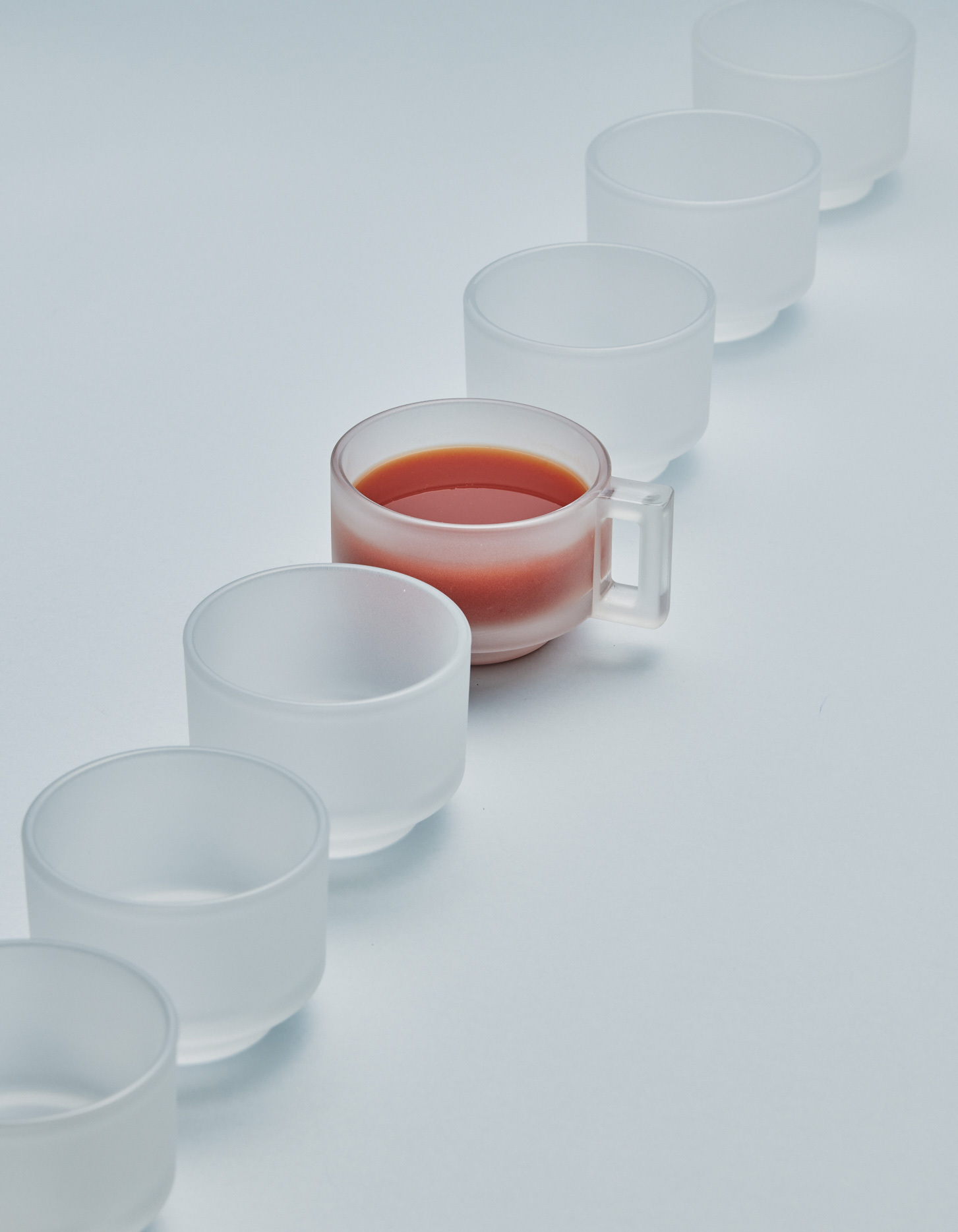 The brand bought Joe Colombo’s license and has developed the line in a more modern way, with an espresso cup, a latte mug… and also a new line named Frosted, with a sandblasting finishing that gives it a modern look. These are Korean products, entirely made by hand and 100% crystal, which always surprises customers because they are very thick and solid. They are everyday objects that are simple and minimalist and that you can use without fear of breaking them. We are very pleased with the success we’ve had so far on the trade show.