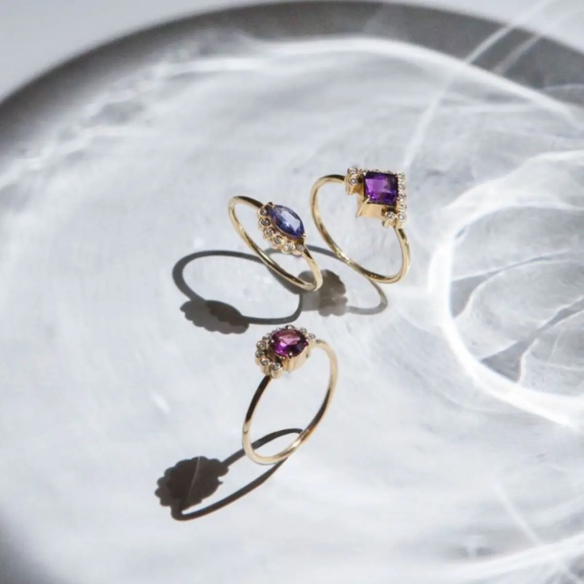 Les collections sont composées d'or 14 carats, de diamants de différentes couleurs et de pierres précieuses uniques. L’esprit est graphique et chic.