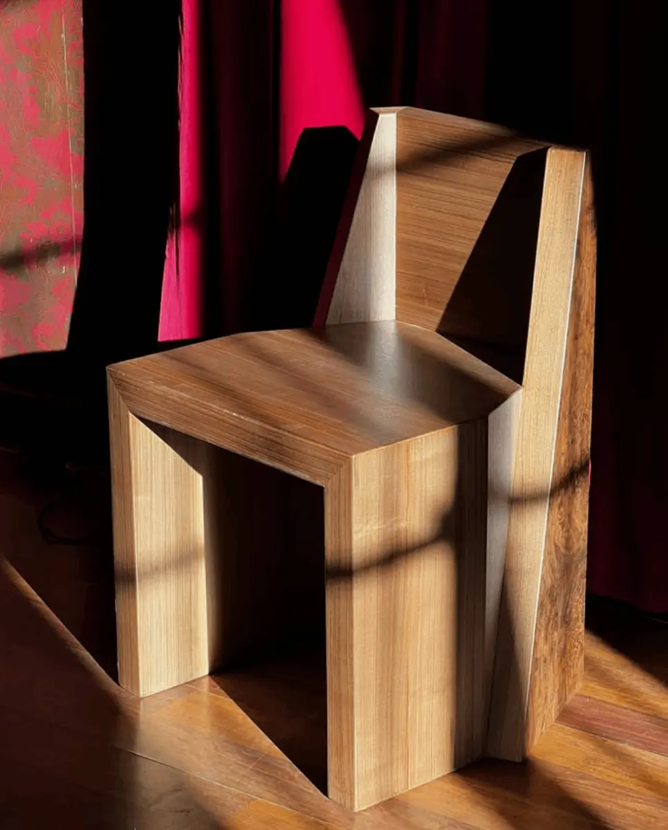 Aujourd’hui, je crée principalement du mobilier, comme des étagères ou des chaises, même si je développe aussi des lampes, un domaine que j’aime particulièrement. Dans mon travail, la matière et la forme sont centrales. Je m’inspire des couleurs et surtout de la manière dont un matériau peut orienter un projet et en influencer la forme finale.