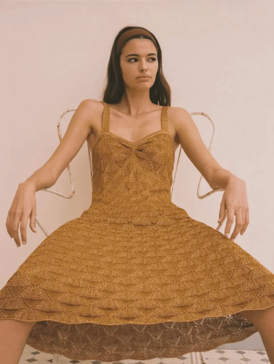 The result unfolds in a wardrobe of tactile whispers: dresses as soft as a sigh, tops that feel like a second skin. With knitwear as her compass, she forges garments that hold structure and softness in equal balance—a gentle rebellion against the creative saturation of fast fashion. “I believe in durability, in garments that are emotionally charged. For me, sustainability isn’t a label. It’s the only way.”