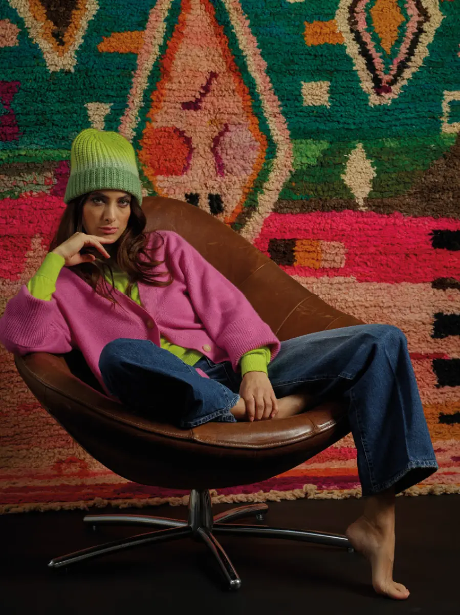 The Holygoat embodies understated luxury with a palette of vivid colours. Staying true to its philosophy of sustainability, the brand uses high-quality natural fibres to create clothing that merges comfort with style. Inspired by contemporary art and natural landscapes, their latest collection features graphic-patterned sweaters, merino wool scarves, and casual jackets. Each creation offers a tactile and visually unique experience, perfect for embracing winter with elegance.