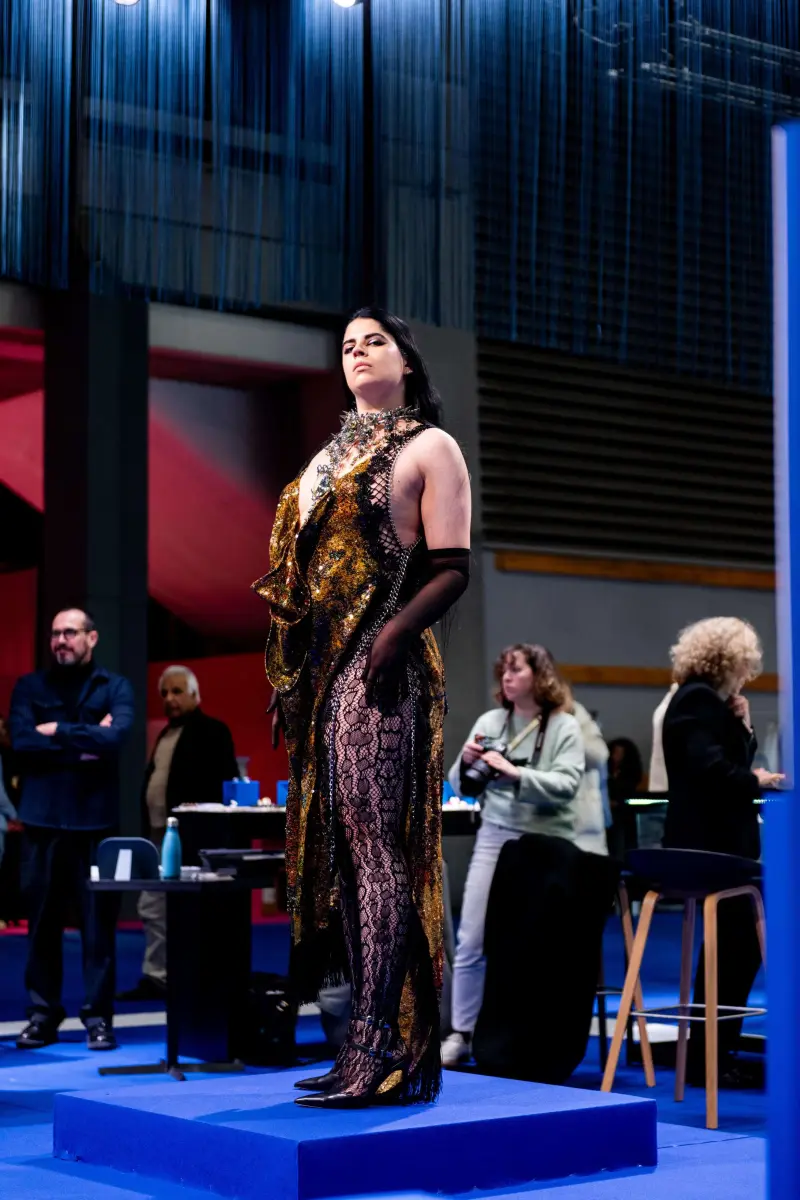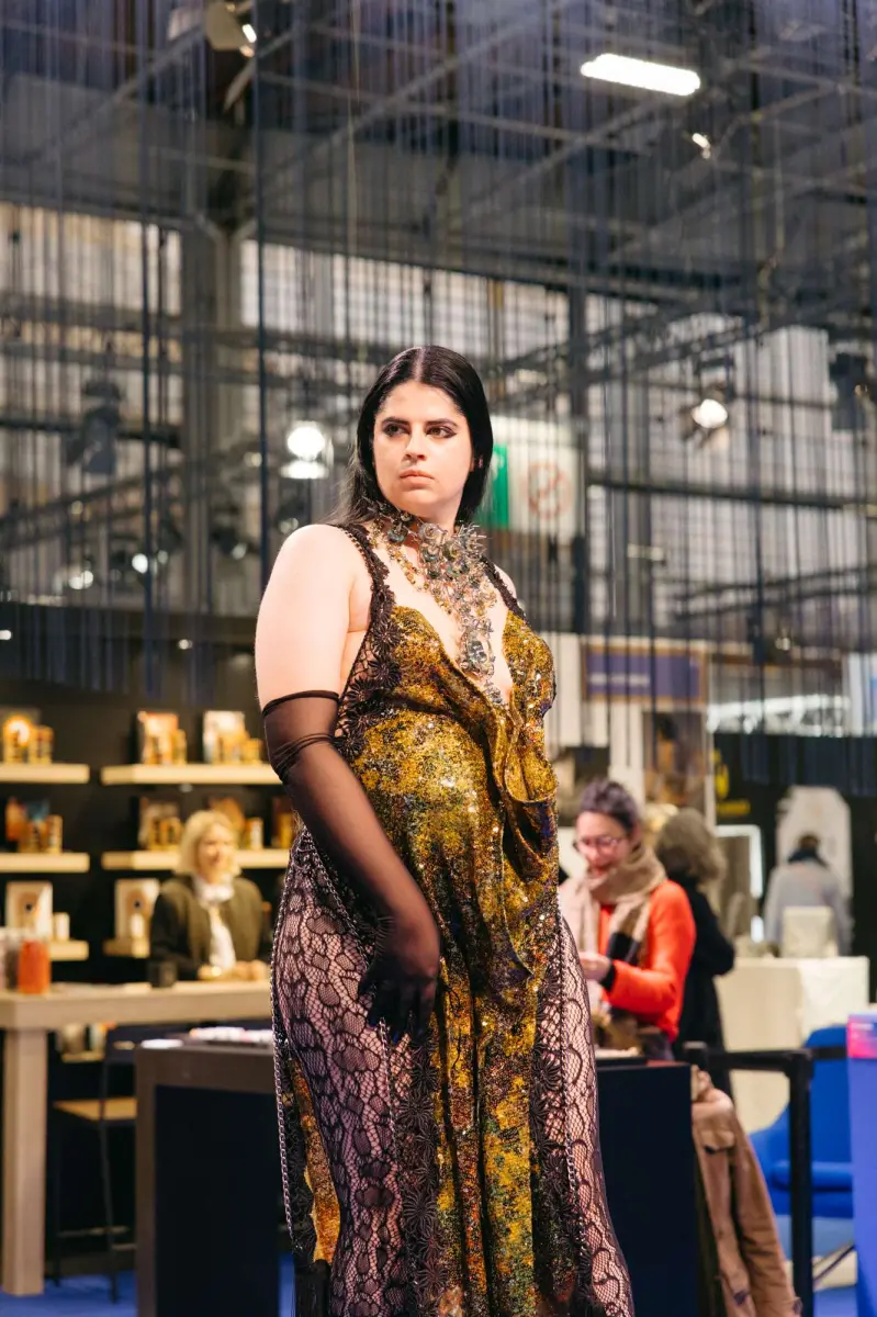 The Swiss designer, armed with a bold vision and sculptural pieces, didn’t simply present a collection—she embodied a manifesto. Gabrielle Huguenot doesn’t see jewellery as mere adornment. Her work delves into the paradoxes of the femme fatale, explores sustainability as a power play, and examines the duality between oppression and emancipation. Through her mythological creation—the Serpent Woman—she redefines the role of the female body in fashion and the narratives imposed upon it. In a captivating and conceptually rich conference, she shared the creative and intellectual journey that led to this raw, uninhibited ode to human expression.