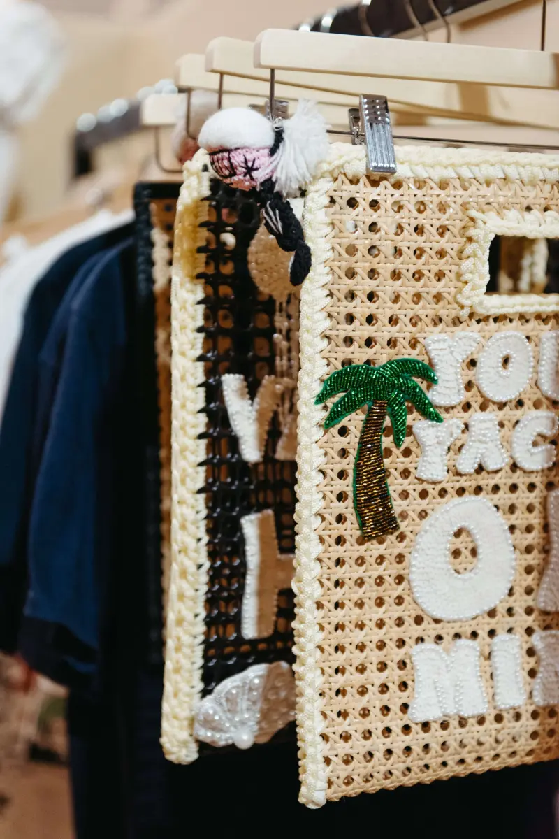 The collection showcased at Premiere Classe is somewhat subtler than the brand’s usual creations, given its experimental nature. “We wanted to see how this simpler yet playful collection would be received,” Ludovica explains. Each piece is handmade in her Bali workshop, where she collaborates with local artisans who create hand-embroidered, crocheted pieces using natural materials like rattan.